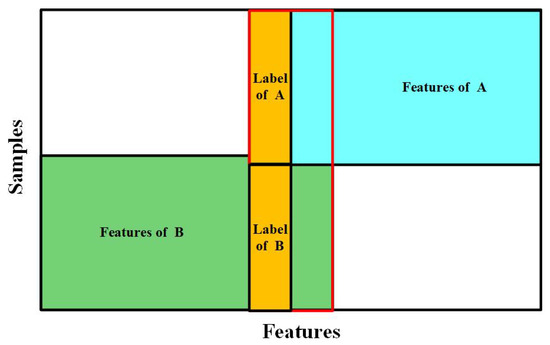 In 2016, the Google team [5] first proposed the concept of Federated Learning based on Shokri. In Federated Learning, participants store all training data locally, train the model locally, and then upload the trained model updates to the cloud. Other participants download the updates to their mobile devices to improve the training model’s performance, using the method of Federated Learning to avoid potential privacy leakage problems in the process of centralized machine learning. Yang et al. [6], among others, have divided Federated Learning into three categories, according to the data distribution of the participants, namely Horizontal Federated Learning (HFL), Vertical Federated Learning (VFL), and Transfer Federated Learning (TFL). The typical application scenario of Horizontal Federated Learning is the end-cloud service architecture, which is mainly aimed at users or enterprises with large amounts of homogeneous data, as shown in Figure 1. Under HFL, the data sets owned by each participant have similar characteristics, but different users are involved [3]. For example, two e-commerce companies from different regions have different customer groups, such that their customer intersection is very small; that is, their data sets have different sample IDs. However, the feature space of the data set related to the demand forecast of a single product is similar; that is, their business models are very similar. Therefore, these two e-commerce companies can work together to conduct Horizontal Federated Learning, in order to build a better demand forecasting model.