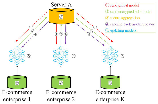 To sum up, the research on Federated Learning mainly focuses on privacy protection [14,15,16,17] and incentive mechanism [18,19,20,21]. At present, the application of Federated Learning in market segments is also gradually developing [22,23,24]. However, there are few examples of literature on the application of Federated Learning to forecasting [25,26,27,28,29]; especially, the application of Federated Learning to the sustainable development research of e-commerce enterprise demand forecasting has not yet been found.