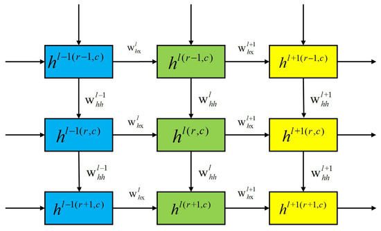 Compared with other types of data, time-series data consists of a sequence of elements. To perform feature extraction on sequence data, two factors—features and time sequence—need to be considered. Specifically, for each neuron, its original output is determined by the neurons at the same time step in the previous hidden layer, and the neuron in the previous time step in the same hidden layer. Therefore, sample feature extraction is performed in the horizontal (same time step) direction, and time sequence analysis is performed in the vertical (same hidden layer) direction. Then, the original output is activated to achieve the purpose of de-linearization. Thereby, the model can handle the non-linear separability situation, the activation output is expressed as , where is the activation function.
