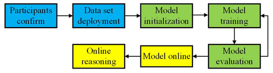 The main application scenario of Horizontal Federated Learning is that there is significant overlap in participant features but few in the participant samples. Horizontal Federated Learning uses the data of different participants to establish a valuable Federated Learning model under the premise of ensuring participant privacy through a decentralized and distributed modeling method. In a Horizontal Federated Learning system [6], suppose that there are k participants with the same data structure collaboratively learning a machine learning model through a parameter or cloud server. The data set owned by each participant is , A basic assumption is that the participants are honest and the server is honest but curious. Therefore, no participant is allowed to leak information to the server. As shown in Figure 2, a typical Horizontal Federated Learning process mainly consists of the following five steps: