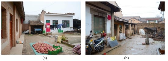 Typical courtyard in Qianyang County. (a) South side of courtyard. (b) North side of courtyard.