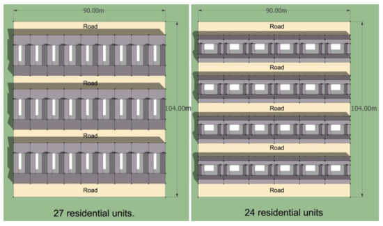 In order to perform the comparative analysis of the advantages and disadvantages of different types of courtyards, thermal comfort simulation software was adopted. Based on the simulated results and traditional spatial layout characteristics, optimal design principles for new vernacular dwellings are submitted, and these improvements were again verified by simulation software, as shown in Figure 5.