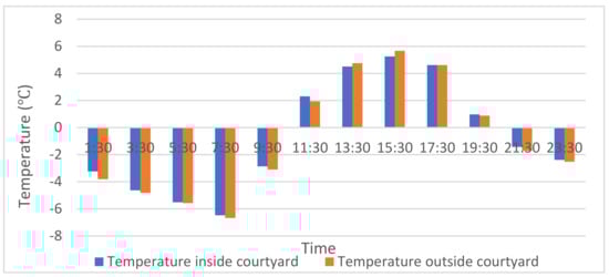 According to the data, the temperature inside and outside the courtyard walls was almost the same; the difference was within 1 °C in both summer and winter. It was thus obvious that courtyard plays no effects on the thermal performance of the outdoor courtyard.