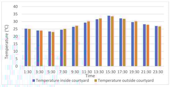 Temperature inside and outside the courtyard in July 2020.