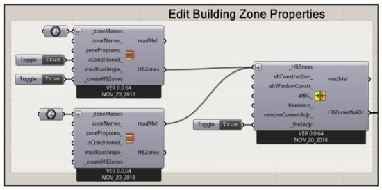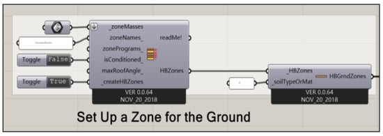 In this study, the advantages of function setting were analyzed and described in detail, and the relevant design practices were also systematically analyzed. The Ladybug tool’s script is described in detail by G. Evola et al. [42]. The workflow components of this study were compiled from the literature [42,43,44]. This study mainly researched the influence of spatial layout on the outdoor microclimate within courtyards, so the thermal exchange between the facade, indoors, and outdoors was not considered.