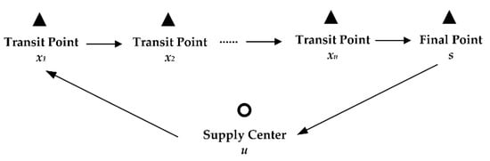 transit points before arriving at the demand point. Then, it goes straight from the demand point to the supply center as shown in Figure 2. The total voyage distance needs to meet the following formula: