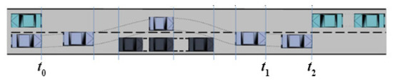 According to the statistical analysis of actual vehicle test data, it can be seen that the driving speed of the vehicle during actual driving is about 80% of the design speed, and the driving speed of the vehicle during overtaking is about 85% to 90% of the design speed. Therefore, the normal driving speed in Equation (8) can be equivalent to 80% of the design speed, the overtaking speed is equivalent to 85% of the design speed, and the speed of returning to the original lane after overtaking is equivalent to 90% of the design speed. Therefore, the formula is transformed into:
