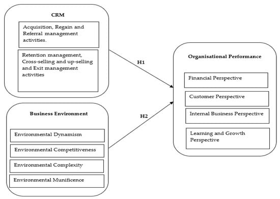 The framework incorporates customer relationship management and the business environment as two main constructs (Figure 1). With these, organisations could achieve sustainable competitive advantage and superior performance. Accordingly, it involves two hypotheses about the relationship between each construct and organisational performance.