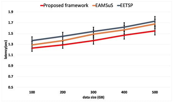 Evaluation of data latency with varying data size between proposed framework and existing solutions.