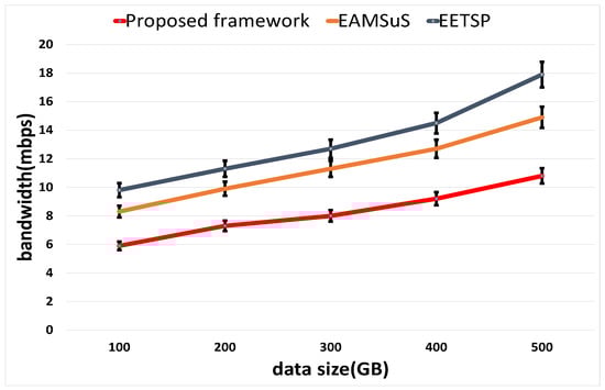 Evaluation of bandwidth with varying data size between proposed framework and existing solutions.