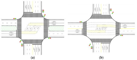 2. Ma, W.; Liu, Y.; Zhao, J.; Wu, N. Increasing the capacity of signalized intersections with left-turn waiting areas. Transp. Res. Part A Policy Pract. 2017, 105, 181–196. [Google Scholar] [CrossRef]