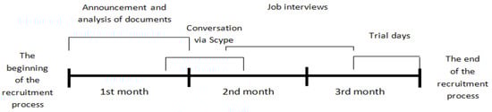 Figure 2 below presents the stages of recruitment process taking place in Marco Ltd., (Edenbridge, UK) taking into account the time horizon [51].