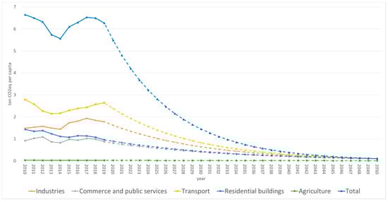 When possible, data are taken directly from the city council data. This is the case of the biomass data, derived from AVEBOIM (a Spanish biomass sectorial association), or the oil products consumed by the public sector provided by official sources [50,51]. For those years without enough data, extrapolations are carried out, maintaining the sectorial share. The method applied in each case is shown in Table 2 and the different downscaling factors in Table 3.