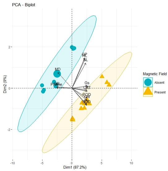 - Bhardwaj, J.; Anand, A.; Nagarajan, S. Biochemical and biophysical changes associated with magnetopriming in germinating cucumber seeds. Plant Physiol. Biochem. 2012, 57, 67–73. [Google Scholar] [CrossRef]