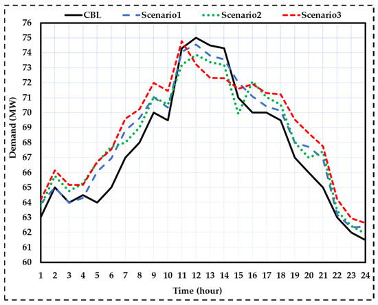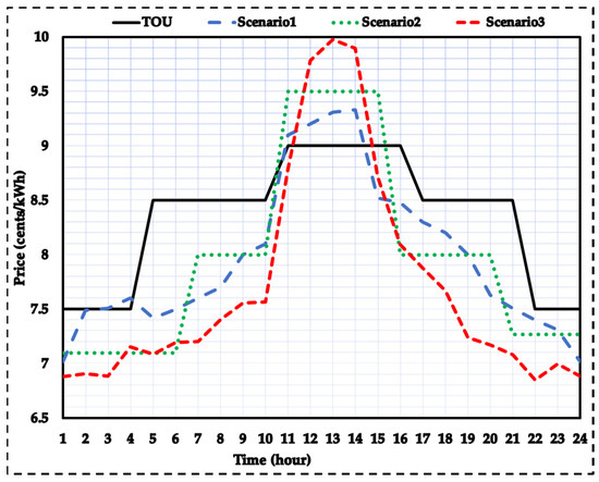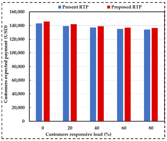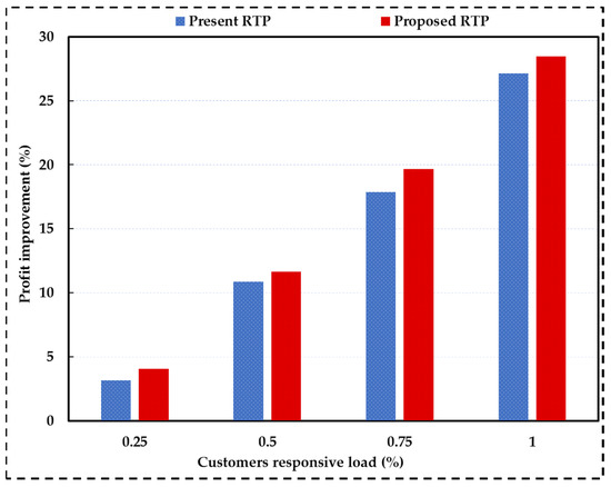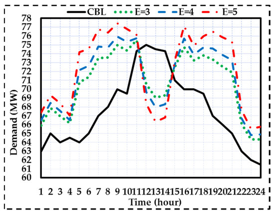 The proposed tariff at nonpeak hours, when is zero, considers lower than the market price. Thus, more discount is considered for increasing energy consumption at low-load hours. At these hours, is equal to its baseline value (the real-time market price).