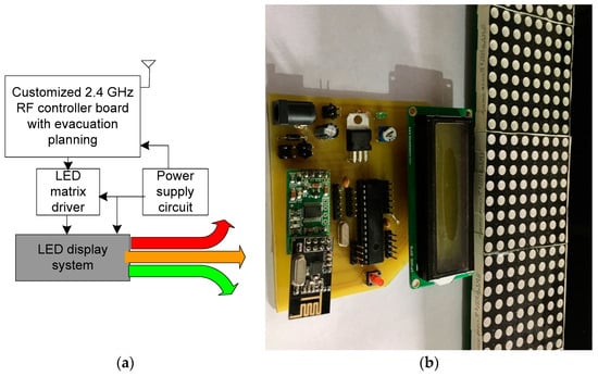 Components and Hardware Prototype of the Evacuation Display System. (a) Different components of Control Board (b) Hardware Prototype of the Evacuation LED Display.