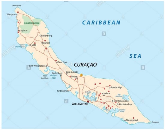 - Alamy Curacao Road Vector Map. Available online: https://www.alamy.com/stock-image-curacao-road-vector-map-168319707.html (accessed on 25 October 2021).