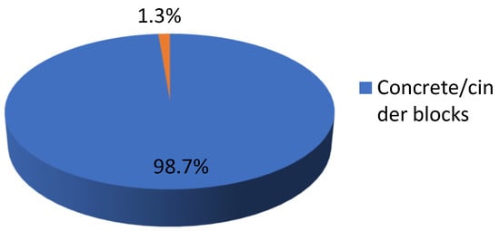 The results also indicate that roughly 97.1% of the investigated residential buildings are built from concrete or cinder blocks, while 1.9% of them are built of timber, and about 1% are constructed using both types of material (see Figure 5). It is important to note that all the examined residential buildings built of timber belong to low-income households.
