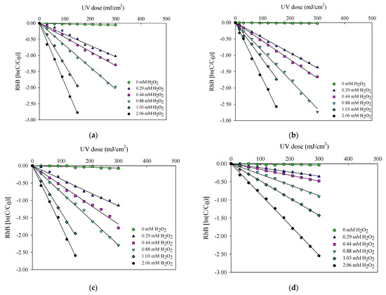 - Ding, X.; Gutierrez, L.; Croue, J.-P.; Li, M.; Wang, L.; Wang, Y. Hydroxyl and sulfate radical-based oxidation of RhB dye in UV/H2O2 and UV/persulfate systems: Kinetics, mechanisms, and comparison. Chemosphere 2020, 253, 126655. [Google Scholar] [CrossRef]