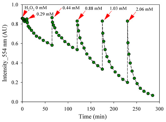 - Hwang, T.-M.; Nam, S.-H.; Lee, J.; Koo, J.-W.; Kim, E.; Kwon, M. Hydroxyl radical scavenging factor measurement using a fluorescence excitation-emission matrix and parallel factor analysis in ultraviolet advanced oxidation processes. Chemosphere 2020, 259, 127396. [Google Scholar] [CrossRef]