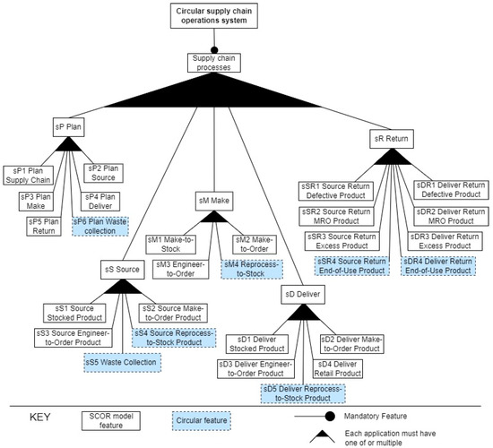 Feature diagram of a circular supply chain operations system.