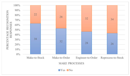 The figures show that many respondents recognized many of the make and deliver processes—at least 24 respondents for each process. Specifically, the added circular processes reprocess-to-stock and deliver reprocess-to-stock were recognized by 26 and 27 respondents, respectively. This also shows that these processes are widely used by companies in practice although they are not part of SCOR.