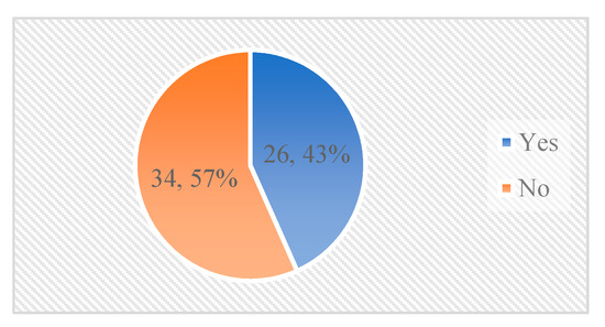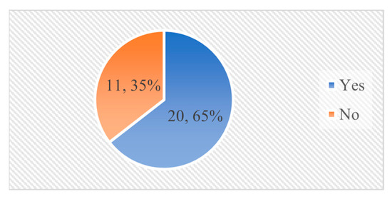 Respondents filled in the economic activities they recognized in their company, based on the UN’s International Standard Industrial Classification of all economic activities (ISIC). The UN notes that this is a comprehensive framework within which economic data can be collected and reported for economic analysis. The classification is used for national activity classification around the world. We used revision 4, currently the latest revision, published in 2008, which includes 21 different activities [41]. We added manufacturing of food products as a separate activity, in addition to manufacturing, because we found it of interest to separately analyze trends in the food sector. Our respondents identified 14 of the 21 economic activities (Figure 3). The economic activities of one respondent were undefined as it was unclear what the respondent referred to. The figure indicates that our respondents came mostly from companies in wholesale and retail trade, agri-food, and water- and waste-related sectors.