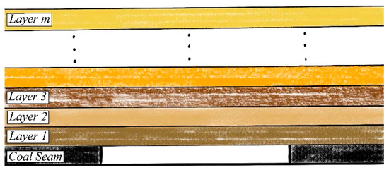 As shown in Figure 1, we presume that there are M layers strata above a coal seam, and denote their thickness, volume force, elastic modulus, and tensile strength as , , , and , respectively, where . According to the composite beam used in KS theory, the load borne by the first layer of an n layers composite beam is given as: