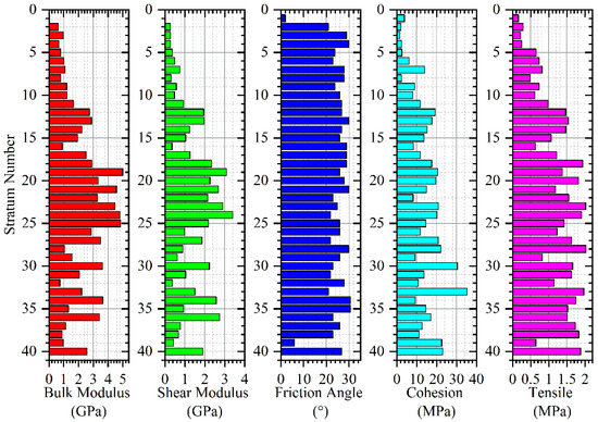Calibrated rock mass properties used for strata of borehole K83. Strata numbers are consistent with that in Table 2.