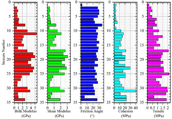 Calibrated rock mass properties used for strata of borehole K82. Strata numbers are consistent with that in Table 1.