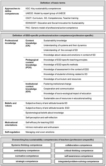 - Brandt, J.-O.; Bürgener, L.; Barth, M.; Redman, A. Becoming a competent teacher in education for sustainable development. Int. J. Sustain. High. Educ. 2019, 20, 630–653. [Google Scholar] [CrossRef]