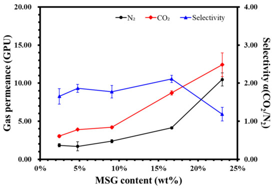 Effect of sodium glutamate content on the gas permeability of composite membrane.