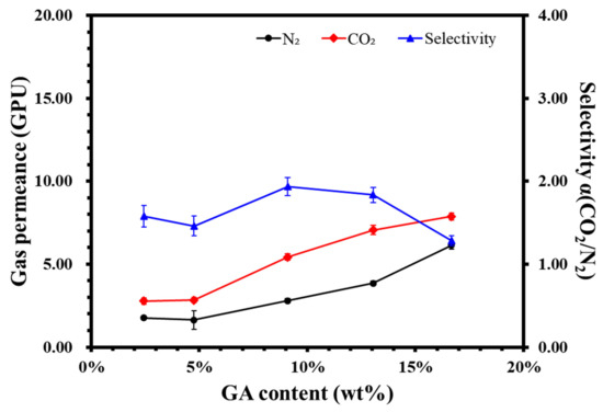 Effect of glutamic acid content on the gas permeability of composite membrane.