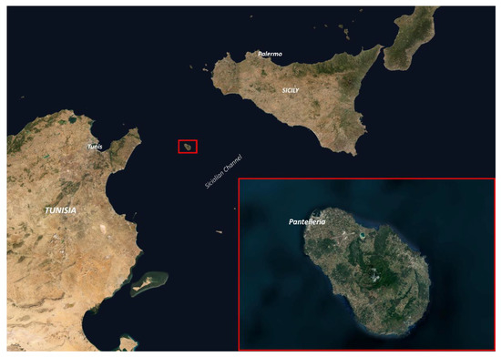The island of Pantelleria is spread over an area of 8453 hectares, located in the centre of the Sicilian Channel in the Province of Trapani (Sicily), on the rift that divides the African continent from the European one (Figure 1).