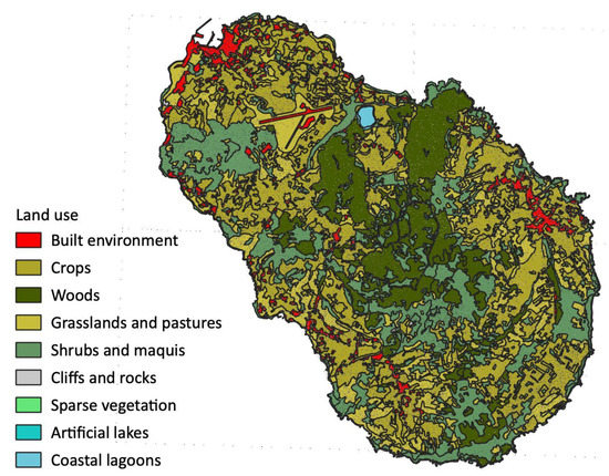 From the 1950s onward, the ageing of the population and the immigration of young people has negatively impacted cultivated area, decreasing from 5200 hectares to currently 1400 hectares, accounting for 18% of the island’s surface [50,51].