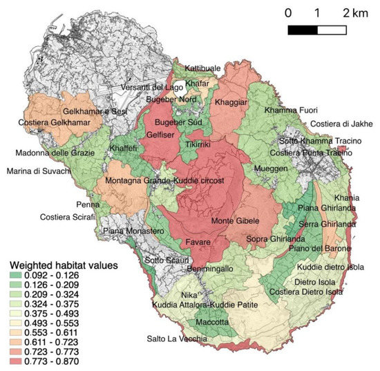 Weighted habitat values within Landscape Sub-systems. (Source: Authors’ elaboration).