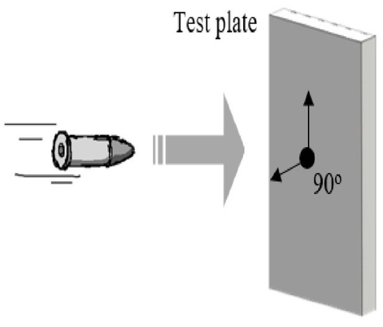 Illustration of motion and direction of projectiles shot against test plate sections.