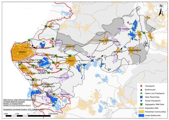 Distribution of checkpoints (Qalqilya governorate) [16,17].