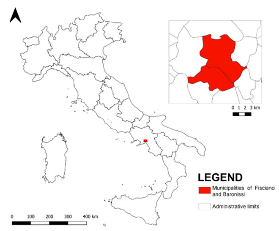 The study area in the Italian context.