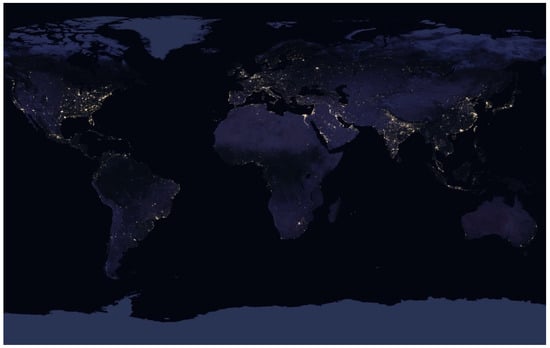 Because of the development of humankind in the Anthropocene era [20], many new phenomena have been discovered, which require correct understanding based on their commonly agreed definitions. In 2001, the first global view of light pollution was published in the “The first World Atlas of artificial night sky brightness” by Cinzano, Falchi and Elvidge, based on radiance-calibrated high-resolution DMSP satellite data and on accurate modelling of light propagation in the atmosphere [21]. This work was then improved upon in 2016, with the first cloud-free mosaic images of the Earth taken by meteorological satellites including the Suomi NPP [22] (Figure 5). These images clearly reveal that 83% of the world’s population is living under light polluted skies [23]. The term light pollution (LP) produced from ground-based illumination was defined as recently as 2011, by the International Commission on Illumination (CIE) in a very general way, as the “sum total of all adverse effects of artificial light” [24]. In addition, man-made sky glow, which disrupts astronomy research and harms natural ecosystems, has been briefly defined as: “part of the sky glow that is attributable to man-made sources of radiation (e.g., outdoor lighting)” [25].