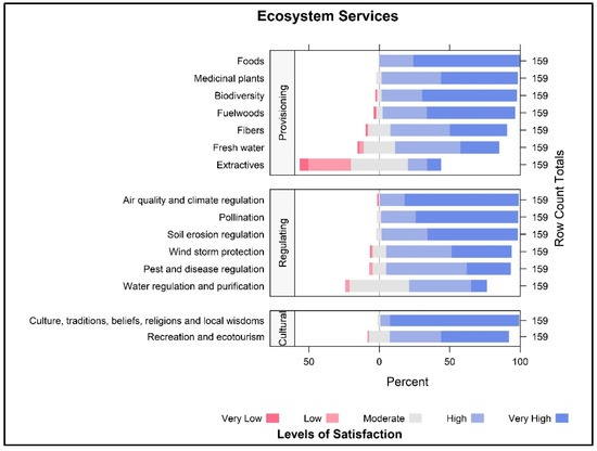 Levels of satisfaction with provisioning, regulating and cultural ecosystem services were determined in the same fashion.