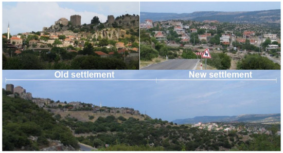 The village comprises two settlements: the old settlement within the ancient city walls and the new settlement developed after 1982. The old settlement is located on the north-facing slope of the hill, out of sight of the sea. The new settlement area was planned in a grid pattern, unlike the old settlement, and was settled on the lower part of the hill (Figure 2).