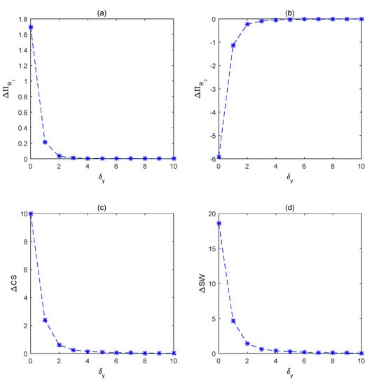 From Figure 4c, we can see that is always positive, indicating that the supplier’s information behavior enhances the consumer surplus.
