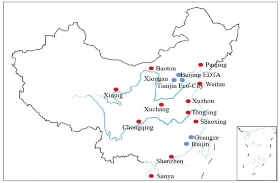 The distribution of the 11 + 5 pilot cities and regions selected is shown in Figure 3. Two factors were considered in the selection of pilot cities. First, representative cities playing a dominant role in national strategic initiatives, such as Beijing–Tianjin–Hebei integration, Yangtze Economic Belt, and Guangdong–Hong Kong–Macao Greater Bay Area, were selected. Second, considering the industrial characteristics of different areas in the eastern and western regions, as well as the enthusiasm of the local governments, cities which had implemented or were implementing various types of solid waste recycling pilot projects and had achieved positive results were selected preferentially. The selection of pilot regions is to explore the construction modes of zero waste in different regions, such as economic development zone, new development zone and county-level city, so as to promote the implementation of a national solid waste management strategy and better serve the national major development strategy.