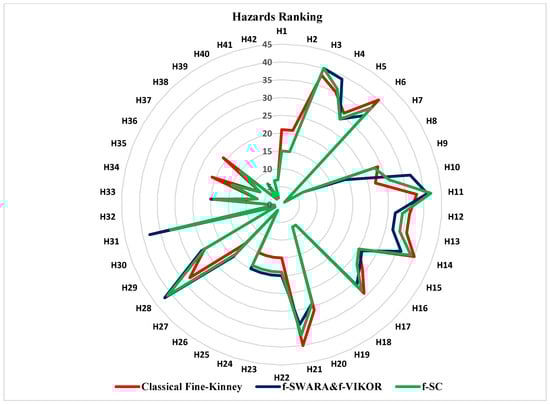 Comparison of the f-SC method with the classical Fine–Kinney and f-VIKOR methods in terms of the hazard rankings.
