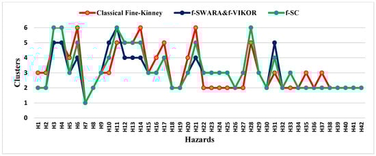 Comparison of the f-SC method with the classical Fine–Kinney and f-VIKOR methods in terms of the hazard groups.