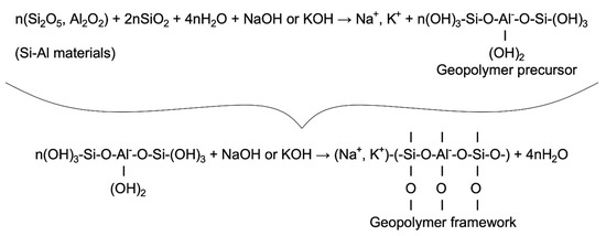 According to the hypothesis of J. Davidovits, during the course of polycondensation processes in an alkali-activated system, oligomers are formed, which subsequently play the role of structural units in the formation of a geopolymer framework (Figure 2).