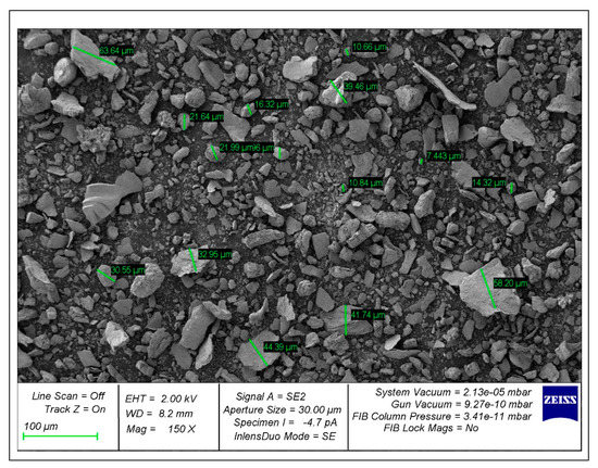 Hamed Fazli et al. [27] studied the effect of the size of the coarse aggregate on the mechanical properties of geopolymer concrete based on metakaolin and conventional concrete. It was found that a change in the pore structure depending on the size of the coarse aggregate significantly affects the development of the strength of the test samples. Furthermore, an increase in the size of the coarse aggregate leads to a higher shrinkage of geopolymer concrete and, therefore, to a larger number of macropores. Consequently, the effect of macropores is significant [27].