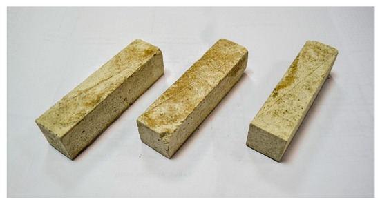 The molded binder compositions were heat treated at a temperature of 65 °C for 24 h, after which the strength of the samples continued under natural conditions until the age of 28 days.