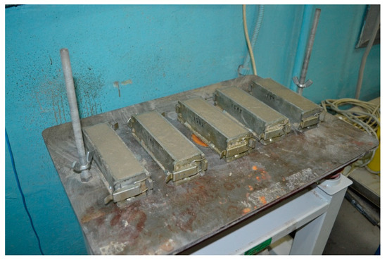 To determine the influence of HT parameters on the kinetics of the strength gain of geopolymers, five series of samples-beams of geopolymer binder composition 4A were made (Figure 14).